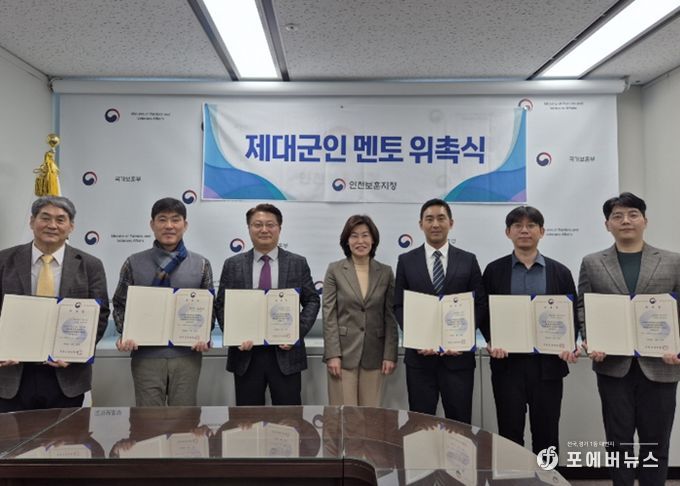 [ 포에버뉴스 김경순 기자 ] 국가보훈부 인천보훈지청 제대군인지원센터는 2월 10일 정부인천지방합동청사에서 먼저 사회에 진출하여 성공한 제대군인을 분야별로 멘토로 선정하는 “2026년 제대군인 멘토 위촉식 및 간담회”를 진행했다.
