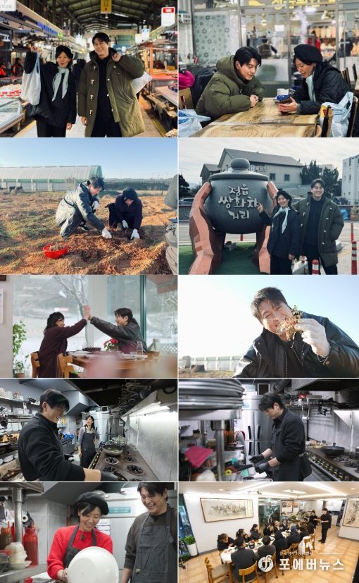 배우 류수영은 이번 여정에서 애진 셰프의 든든한 동반자이자 보조 셰프로 함께한다. 한겨울, 밭에서 냉이를 캐고 시장과 부엌을 오가며 재료를 탐구하는 과정 속에서 요리에 대한 그의 진정성이 자연스럽게 드러난다. 메뉴 개발 전반에도 깊숙이 참여하며 애진 셰프의 곁을 지키는 서포터 역할을 톡톡히 해내 눈길을 끈다.
