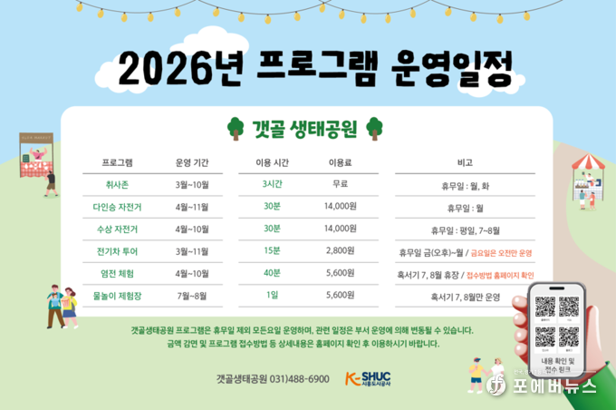 공사는 갯골생태공원만의 독특한 생태 자원과 계절별 특성을 극대화하여 취사, 자전거 투어, 전통 생태체험, 물놀이 등 전 세대가 함께 즐길 수 있는 참여형 콘텐츠를 대폭 강화했다.