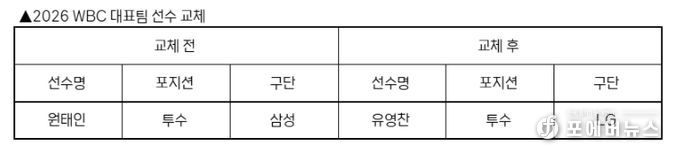 [ 포에버뉴스 사공선 기자 ] KBO 전력강화위원회는 부상으로 인해 WBC 참가가 어려워진 삼성 원태인을 대체할 선수로 LG 유영찬을 확정하고 WBC 조직위에 선수 교체 승인을 요청했다.