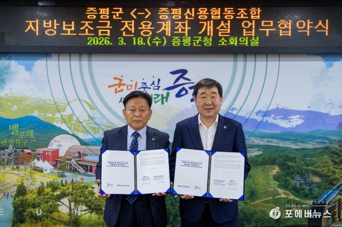 이재영 군수는 “증평새마을금고에 이어 증평신협과 추가 협약을 체결하면서 지방보조사업자의 금융기관 선택 폭을 넓히는 동시에 지역 금융기관과의 협력 기반도 한층 강화됐다”며 “앞으로도 지역 금융과의 상생을 바탕으로 보조사업자의 이용 편의를 높이기 위해 지속적으로 노력하겠다”고 말했다.