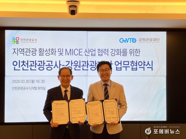 인천관광공사는 개항장의 역사문화 자원, 송도의 국제회의·비즈니스 인프라, 영종도의 글로벌 공항 접근성과 복합리조트 등 인천의 3대 거점 인프라를 바탕으로 강원관광재단과 협력해 지역관광과 마이스 산업 경쟁력 강화에 힘을 모을 계획이다.
