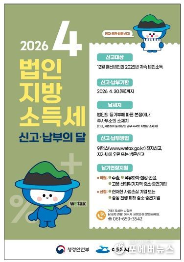 [ 포에버뉴스 오명숙 기자 ] 여수시는 4월 한 달간 ‘2025년 귀속 법인지방소득세에 대한 집중 신고·납부 기간’을 운영한다고 밝혔다.