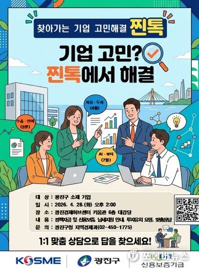 [ 포에버뉴스 김경순 기자 ] 광진구가 중소벤처기업진흥공단과 협력하여 관내 기업들의 경영 애로사항을 현장에서 해결하는 '중소기업·스타트업 찐(眞)톡(Talk)' 프로그램이 본격 시행된다.