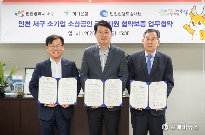 [ 포에버뉴스 김경순 기자 ] 인천 서구는 지난 24일 하나은행, 인천신용보증재단과 함께 15억원 규모의 '서구·하나은행 특별지원 협약보증' 및 '인천서구 특례보증업무협약'을 체결했다고 밝혔다.