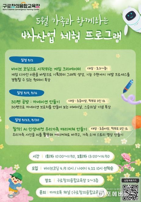 참여 신청은 구로창의융합교육장 누리집에서 선착순으로 접수하며, 프로그램별 운영 일정과 신청 기간 등 자세한 사항도 함께 확인할 수 있다.