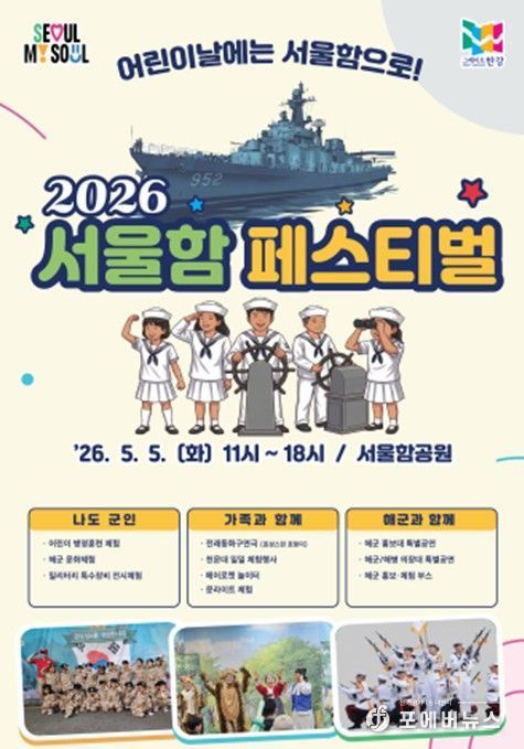 망원한강공원 내 서울함공원에서 5월 5일 어린이날을 맞아 ‘2026 서울함 페스티벌’을 개최한다. 해군과 협업해 서울함공원 특화 콘텐츠로 구성된 이번 축제는 어린이와 가족이 함께 해군 문화를 직접 체험하고 특별한 추억을 쌓을 수 있는 자리가 될 예정이다.