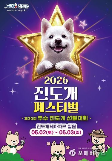 [ 포에버뉴스 오명숙 기자 ] 진도군이 오는 5월 2일부터 3일까지 이틀간 진도개테마파크에서 ‘진도개의 고향, 진도개테마파크에서의 만남’을 주제로 ‘2026 진도개 페스티벌’과 ‘제30회 우수 진도개 선발대회’을 동시에 개최한다.