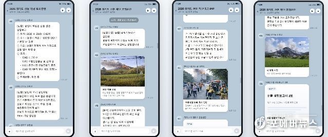 [ 포에버뉴스 김경순 기자 ] 경기도는 29일 모바일 메신저(카카오톡)를 활용한 산불 대응 모의훈련을 실시했다. 모바일 기반의 재난 대응 훈련은 이번이 처음으로, 장소에 구애받지 않고 신속하게 상황을 전파하고 즉각적으로 대응하는 실전 역량을 강화하기 위해 마련됐다.