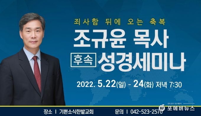기쁜소식한밭교회 담임목사이자 이번 후속 성경세미나 강사 조규윤 목사는 성도들이 죄 사함을 받은 후 신앙생활을 하면서 어떻게 하나님과 동행하는지에 대한 믿음의 삶에 대해 강연한다. 자세한 내용은 042-523-2570으로 문의하면 된다.