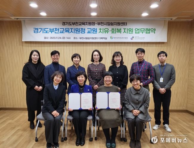 [ 포에버뉴스 김경순 기자 ] 경기도부천교육지원청은 부천시일쉼지원센터와 11월 24일 교원의 심리 치유와 회복 지원을 위한 업무협약을 체결했다.
