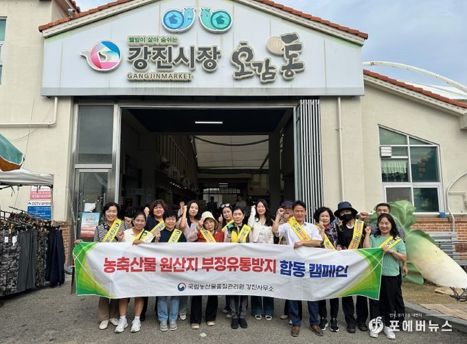 [ 포에버뉴스 오명숙 기자 ] 강진군이 지난 29일 오전 추석 명절을 앞두고 강진읍 오감통시장 내 상가 및 외부 노점상을 대상으로 농축산물·임산물의 원산지 표시 합동캠페인을 실시했다. 이번 캠페인은 명절을 맞아 수요가 급증하는 제수용 농산물 및 임산물의 부정 유통을 사전 차단하고, 소비자가 안심하고 먹거리를 구매할 수 있는 환경을 조성하기 위해 마련됐다.