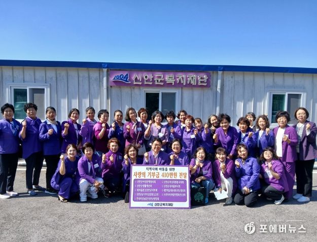 [ 포에버뉴스 오명숙 기자 ] 신안군 지역 복지 발전에 앞장서고 있는 신안군여성단체협의회(회장 안미영)를 비롯한 9개 여성 관련 단체 임원 32명은 1일 신안군복지재단(이사장 강정희)을 방문해 ‘어린이집 연합 한마음 대회’ 지원을 위한 기부금 410만 원을 쾌척하며 지역사회 어린이들을 위한 나눔을 실천했다.
