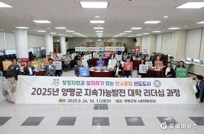 [ 포에버뉴스 박정배 기자 ] 양평군은 지난 9월 24일과 10월 1일 양일간 군청 대회의실에서 ‘2025 양평군 지속가능발전대학 리더십 과정’을 성공적으로 마무리했다고 밝혔다.
