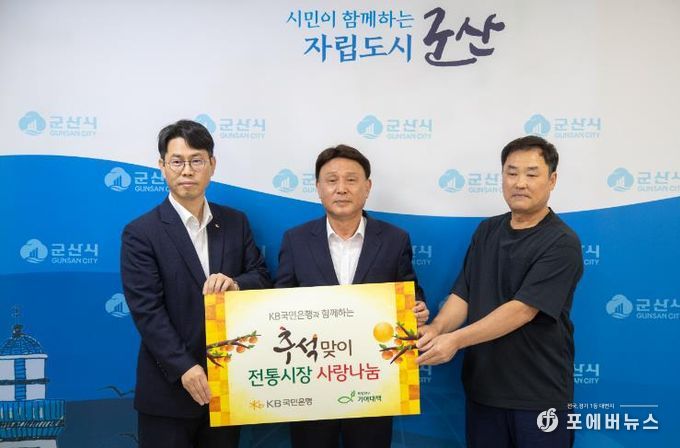 전달식에 참석한 KB군산종합금융센터 서성수 지점장은 “추석 명절을 맞아 경제적 어려움을 겪는 이웃들에게 작은 위로가 되고, 경기침체로 힘든 시기를 보내고 있는 지역 전통시장에도 활력이 되기를 바란다.”라며 “앞으로도 KB국민은행은 나눔문화 확산에 앞장서겠다.”라고 밝혔다.