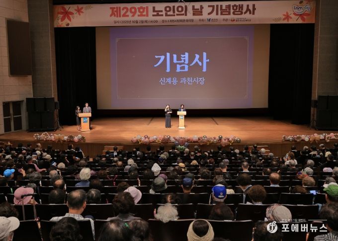 [ 포에버뉴스 김경순 기자 ] 과천시는 2일 시민회관 대극장에서 ‘제29회 노인의 날 기념식’을 열었다. 시가 주최하고 과천시노인복지관이 주관한 가운데 열린 이날 행사에는 지역 어르신 1천1백여 명이 참석했다.