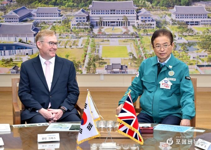 [ 포에버뉴스 사공선 기자 ] 이철우 경상북도지사는 3일 도청을 방문한 콜린 크룩스(Colin Crooks) 주한 영국대사 내외와 만나, 경주 APEC 정상회의의 성공적 개최 협력 방안과 함께 산업·문화·교육 등 다양한 분야의 교류 확대를 논의했다.