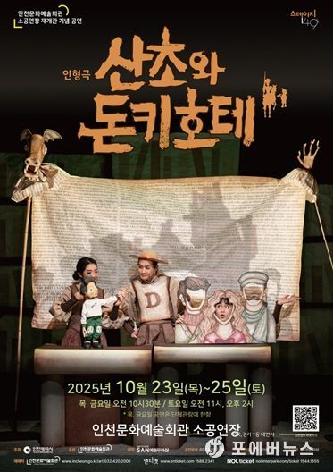 [ 포에버뉴스 김경순 기자 ] 인천문화예술회관은 오는 10월 23일부터 25일까지 소공연장에서 예술무대산의 가족 인형극 〈산초와 돈키호테〉를 무대에 올린다. 이번 공연은 어린이 눈높이에 맞춘 명작을 소개하는 인천문화예술회관의 ‘어린이명작무대’의 일환으로 마련됐다.
