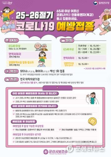 [ 포에버뉴스 이승훈 기자 ] 군산시가 오는 10월 15일부터 인플루엔자와 코로나19 예방접종을 실시한다.