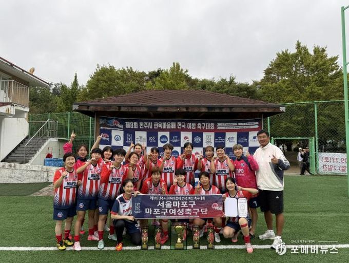 [ 포에버뉴스 김경순 기자 ] 마포구가 지원하는 ‘마포구 여성축구단’(단장 박종래)이 ‘제8회 전주시 한옥마을배 전국 여성 축구대회’에서 챔피언에 오르는 쾌거를 이뤘다.