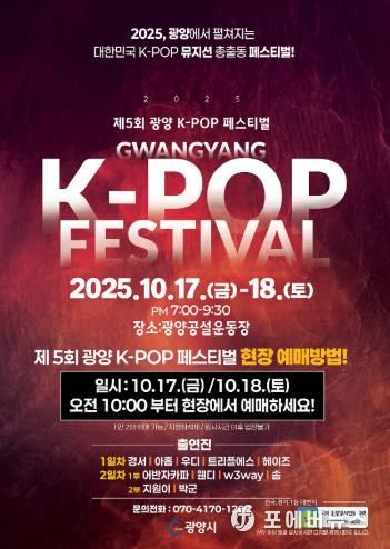 이현주 광양시 관광과장은 “기존의 탄탄한 최정상급 라인업에 신예 아티스트가 합류하면서 라인업이 더욱 풍성해졌다”며 “강렬한 퍼포먼스와 비주얼, 독창적인 음악 스타일로 특별한 감동을 선사할 제5회 광양 K-POP 페스티벌에 많은 관심과 성원을 바란다”고 말했다.