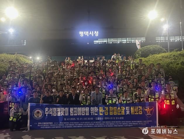 [ 포에버뉴스 김경순 기자 ] 2025년 추석 명절을 맞아, 평택시는 지난 10월 1일 지역 주민들의 안전한 명절 환경조성을 위해 자율방범연합대 및 자율방범대원들과 함께 합동 순찰을 진행했다.