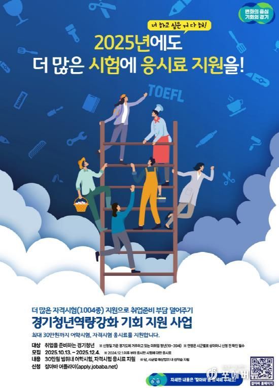 ‘경기청년역량강화 기회 지원 사업’은 미취업 청년들의 경제적 부담을 완화하기 위해 어학 시험 및 자격시험 응시료를 연간 최대 30만원까지 실비로 지원하는 사업이다.