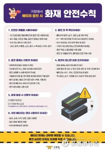 소방서 관계자는 “리튬이온배터리는 우리 생활 곳곳에 사용되고 있는 만큼, 올바른 충전과 보관 습관만으로도 대부분의 화재를 예방할 수 있다”며 “시민 모두가 안전수칙을 숙지해 화재 없는 안전한 생활환경을 만들어가길 바란다”고 말했다.