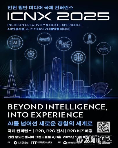 [ 포에버뉴스 김경순 기자 ] 인천광역시는 오는 10월 16일부터 17일까지 송도컨벤시아 그랜드볼룸 A·B홀에서‘ICNX 2025(인천 첨단 미디어 국제 컨퍼런스)’를 개최한다고 밝혔다.