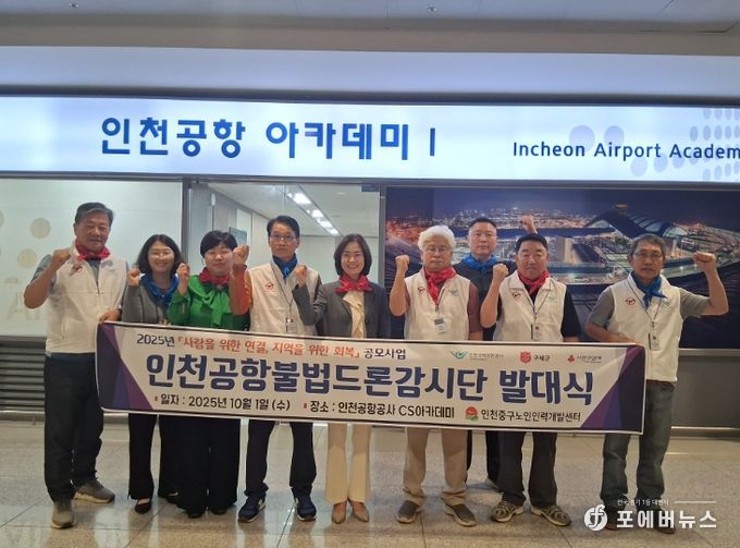 [ 포에버뉴스 김경순 기자 ] 인천중구노인인력개발센터는 올해 10월부터 ‘인천공항불법드론감시단’이 본격적인 운영에 들어갔다고 13일 밝혔다.