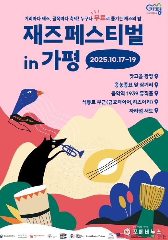 [ 포에버뉴스 김경순 기자 ] 가평군은 (사)문화현상과 함께 오는 17일부터 19일까지 3일간 ‘재즈페스티벌 in 가평’을 개최한다. 이번 축제는 누구나 부담 없이 즐길 수 있는 무료 음악 축제로, 가평읍내 곳곳(잣고을 광장, 흥농종묘 앞 삼거리, 음악역1939 뮤직홀, 자라섬 서도 등)을 재즈 선율로 물들일 예정이다.