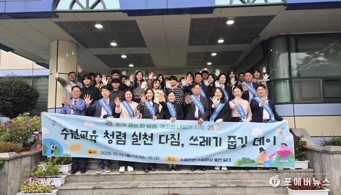 [ 포에버뉴스 김경순 기자 ] 경기도수원교육지원청은 10월 13일, 매월 추진 중인 청렴 캠페인의 일환으로 전 부서가 함께하는 ‘청렴 실천 다짐 쓰레기 줍깅 데이’를 실시했다.