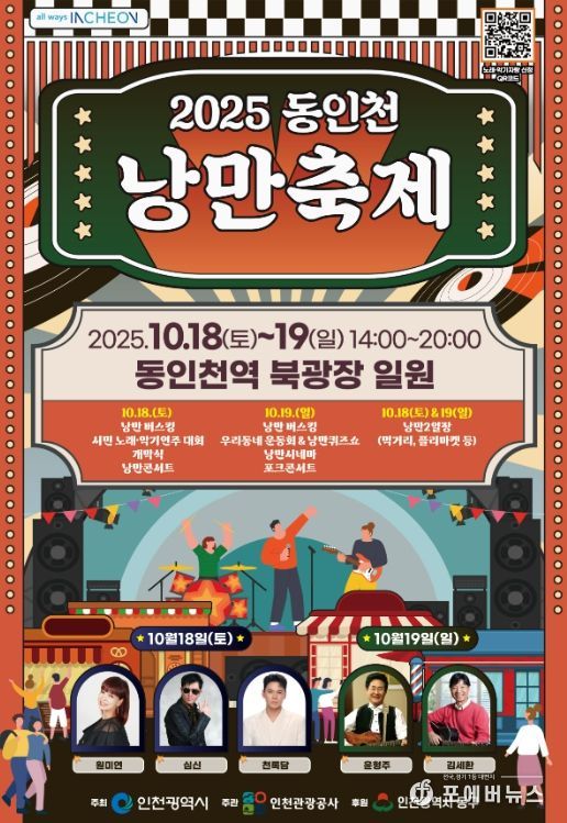 [ 포에버뉴스 김경순 기자 ] 인천광역시가 주최하고 인천관광공사가 주관하는‘2025 동인천 낭만축제’가 10월 18일부터 19일까지 동인천역 북광장에서 개최된다.