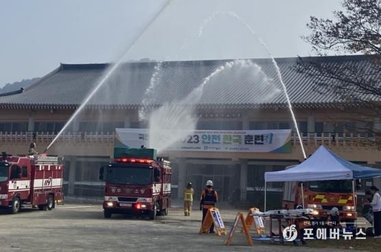 훈련 시나리오는 남서쪽 해안에서 강도 5.0 지진 발생으로 고싸움놀이 전수교육관 건축물이 붕괴함과 동시에 화재까지 발생, 주민 70명 가량이 갇히면서 이들을 구조하는 과정에 방점을 두고 있다.