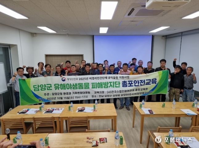 [ 포에버뉴스 오명숙 기자 ] 담양군은 지난 15일 에코교육관에서 유해야생동물 기동포획단을 대상으로 포획활동 시 준수사항과 총기사고 예방 등을 위한 안전교육을 진행했다.