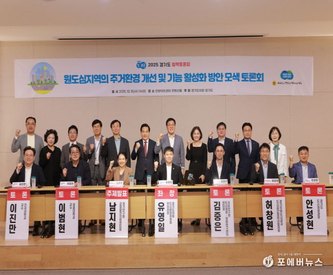 [ 포에버뉴스 김경순 기자 ] 경기도의회 도시환경위원회 유영일 부위원장(국민의힘, 안양5)이 좌장을 맡은 '원도심지역의 주거환경 개선 및 기능 활성화 방안 모색 토론회'가 10월 15일 안양아트센터 컨벤션홀에서 개최됐다. 이번 토론회는 경기도와 경기도의회가 공동으로 주최하는 ‘2025 경기도 정책토론회’의 일환으로 개최됐다.