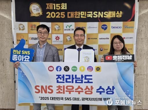 [ 포에버뉴스 오명숙 기자 ] 전라남도는 국내 최고 권위의 SNS 시상식인 ‘2025 대한민국 SNS 대상(KOREA SNS AWARD)’에서 광역자치단체 부문 최우수상을 수상했다고 밝혔다.