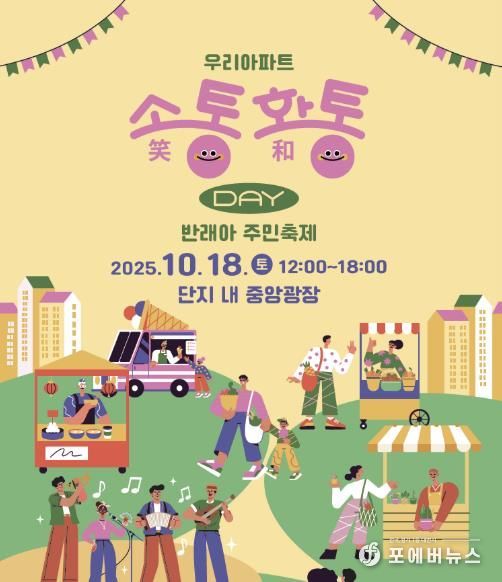 [ 포에버뉴스 김경순 기자 ] 서울 서초구는 공동주택 이웃 간 소통과 화합을 위한 ‘우리 아파트 소(笑)통·화(和)통 Day’를 오는 18일 토요일 반포1동에 위치한 반포래미안아이파크에서 개최한다고 밝혔다.