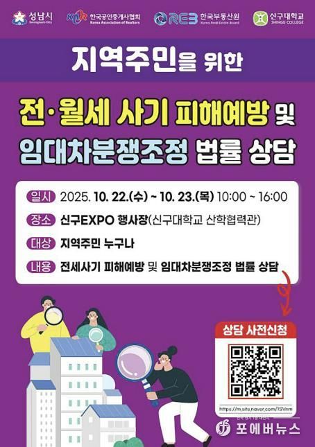 [ 포에버뉴스 김경순 기자 ] 성남시는 오는 10월 22일부터 23일까지 양일간 오전 10시부터 오후 4시까지 신구대학교 신구EXPO 행사장에서 ‘전세사기 피해예방 상담 부스’를 운영한다.