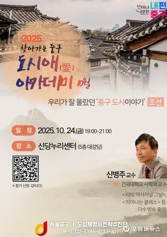 [ 포에버뉴스 김경순 기자 ] 서울 중구가 오는 24일 저녁 7시 신당누리센터 5층 대강당에서 세 번째 '찾아가는 중구 도시애(愛) 아카데미'를 연다.