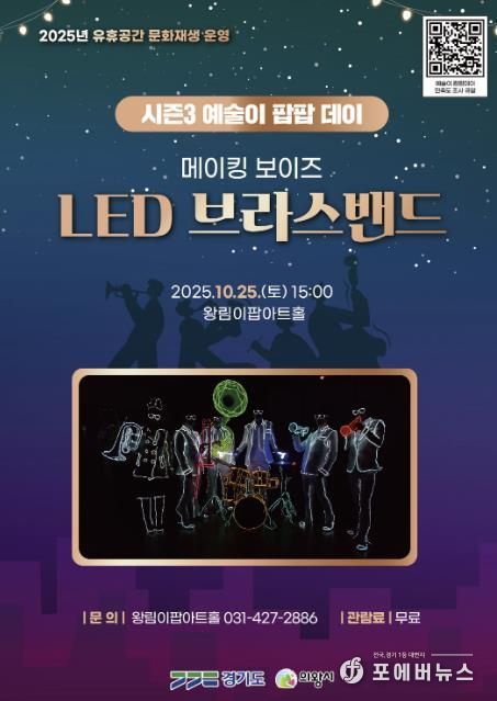 [ 포에버뉴스 김경순 기자 ] 의왕시는 오는 10월 25일 오후 3시, 왕림이팝아트홀(의왕시 왕곡로 74)에서 금관악기 앙상블과 첨단 엘이디(LED) 조명 기술을 결합한 융복합 공연‘엘이디(LED) 브라스밴드’를 선보인다고 밝혔다.