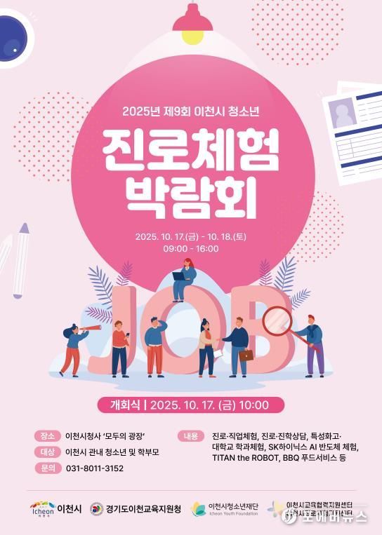 [ 포에버뉴스 박정배 기자 ] 이천교육지원청은 10월 17일~18일 이틀간 이천시청 앞 광장 일대에서 이천시 청소년 진로체험박람회를 개최한다.