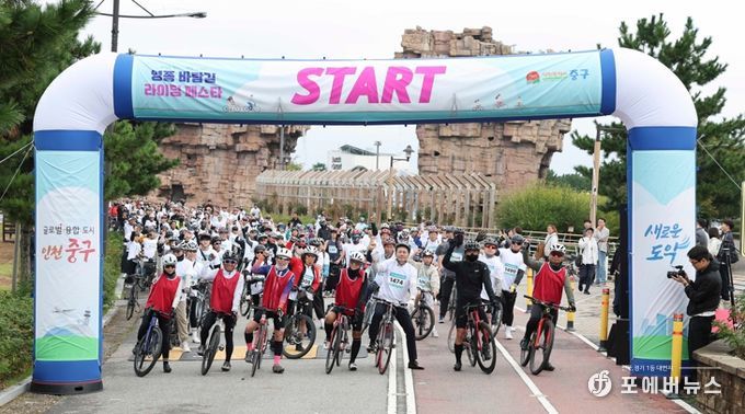 [ 포에버뉴스 김경순 기자 ] 영종국제도시의 해안을 자전거로 달리며 인천 앞바다의 가을 풍광과 정취를 만끽하는 ‘영종 바람길 라이딩 페스타’가 지난 18일 영종 씨사이드파크 일원에서 성황리에 열렸다.