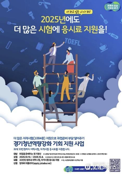 [ 포에버뉴스 김경순 기자 ] 광주시는 미취업 청년들의 취업 준비 부담을 완화하고 역량 강화를 돕기 위해 어학 및 자격시험 응시료를 지원하는 ‘경기청년 역량강화 기회지원 사업’ 참여자 추가 모집을 진행한다고 20일 밝혔다.