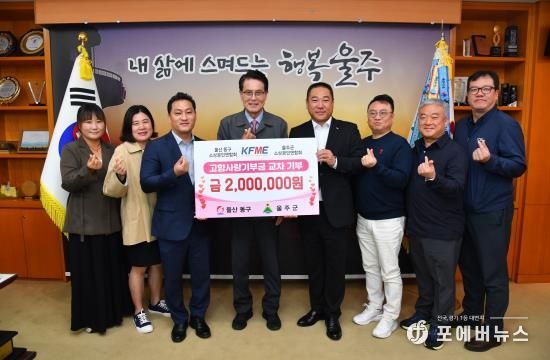 [ 포에버뉴스 사공선 기자 ] 울주군 소상공인연합회와 울산 동구 소상공인연합회가 21일 고향사랑기부제 활성화와 지역 상생 발전을 위해 상호 지자체에 200만원씩 교차 기부를 실시했다.