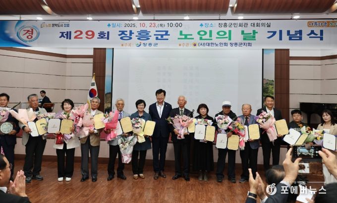 [ 포에버뉴스 오명숙 기자 ] 장흥군은 23일 오전 장흥군민회관에서 ‘제29회 노인의 날 기념식’을 개최했다고 전했다.