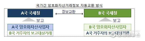 국세청은 정보교환협정 가입국과 상대국 거주자의 암호화자산 거래정보를 상호교환 하며, 첫 정보교환은 ’26년 거래정보에 대해 ’27년 이행 예정이다.