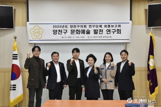 [ 포에버뉴스 김경순 기자 ] 2025년 양천구의회 의원연구단체 ‘양천구 문화예술 발전 연구회’가 지난 7일(금) 구의회 1층 회의실에서 최종보고회를 열어 올해 연구 활동을 마무리하며 성과를 공유했다.