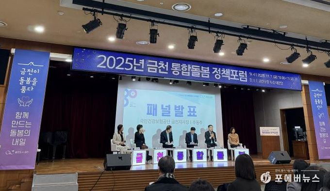 [ 포에버뉴스 김경순 기자 ] 금천구는 지난 7일 구청사 12층 대강당에서 보건·복지·의료·돌봄 분야 전문가와 관련 기관, 명예사회복지공무원 등 150여 명이 참석한 가운데 ‘2025년 금천 통합돌봄 정책포럼’을 성황리에 개최했다고 밝혔다.