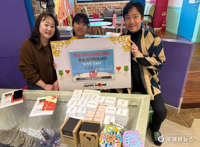 [ 포에버뉴스 김경순 기자 ] 부평구 청소년꿈나래터는 지난 12일 소속 청소년자원봉사단 ‘청천히 다같이’가 ‘부평구 해피홈 보육원’을 방문해 직접 만든 천연 수제비누를 전달했다고 밝혔다.